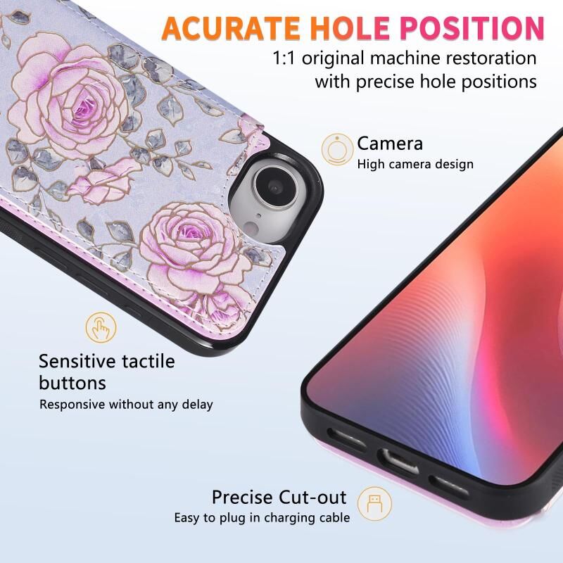 For iPhone 16e Printed Double Buckle RFID Anti-theft Phone Case(Pastoral Rose)