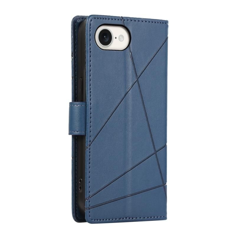 For iPhone 16e PU Genuine Leather Texture Embossed Line Phone Case(Blue)