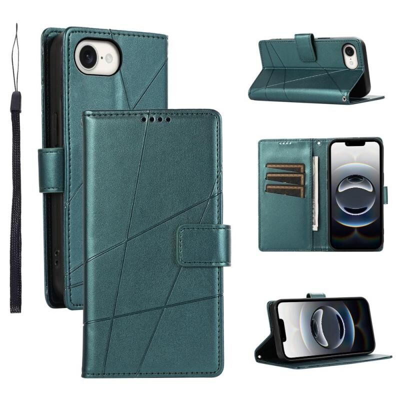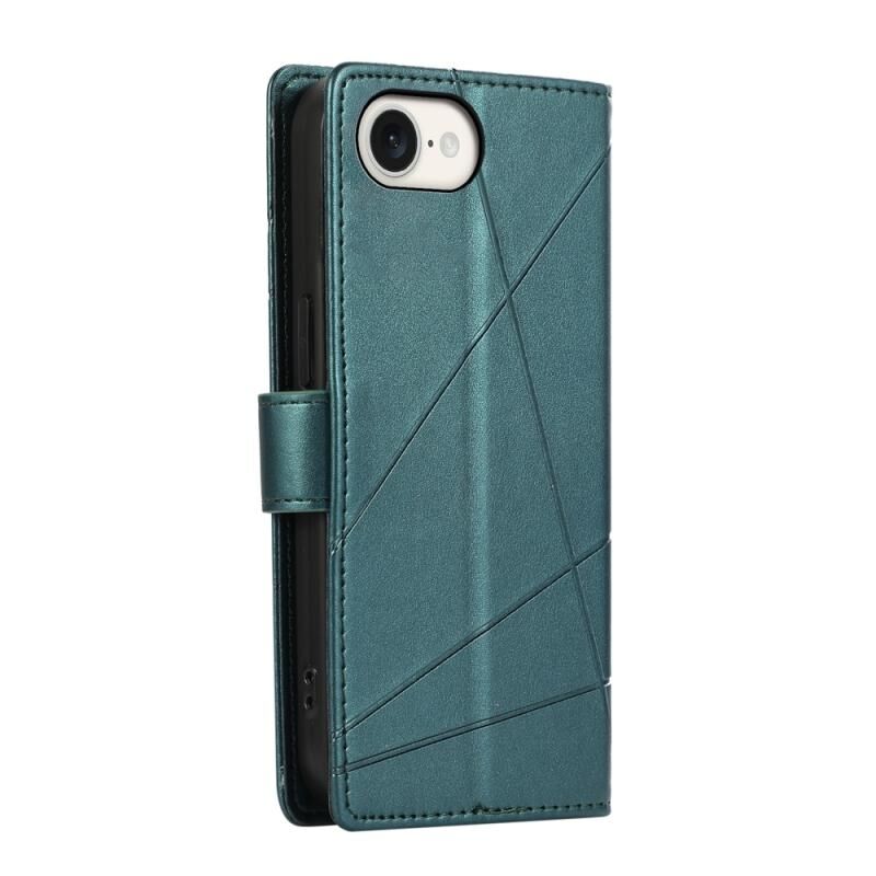 For iPhone 16e PU Genuine Leather Texture Embossed Line Phone Case(Green)