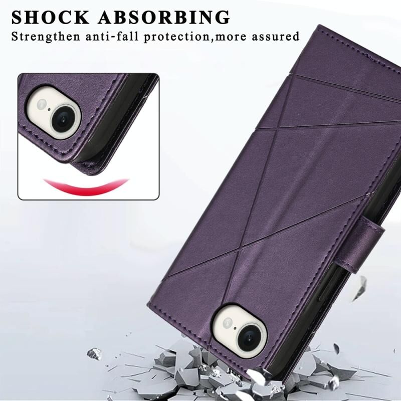 Θήκη τηλεφώνου για iPhone 16e από γνήσιο δέρμα PU με ανάγλυφη υφή και λεπτομέρειες γραμμής (Μωβ)
