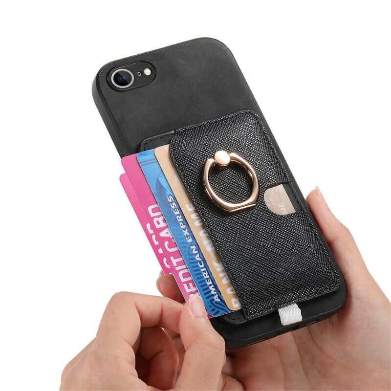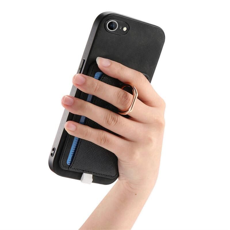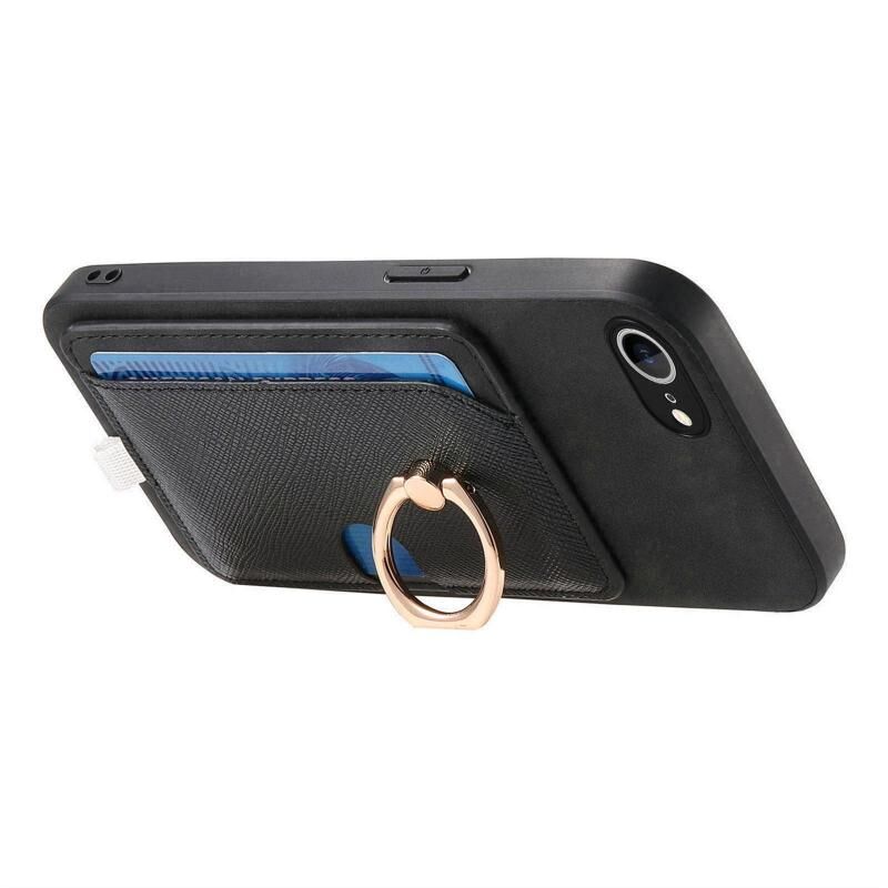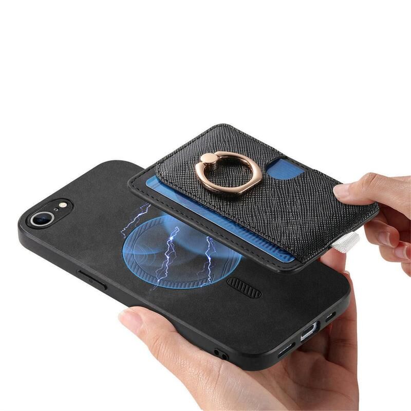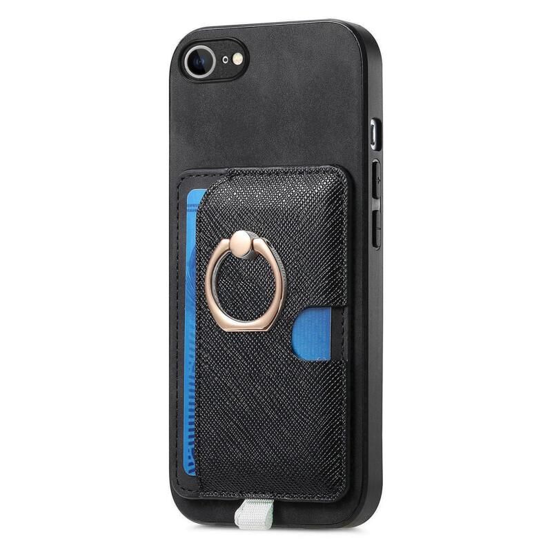For iPhone 16e Retro Cross Leather Ring Side Insert Card Bag MagSafe Phone Case(Black)