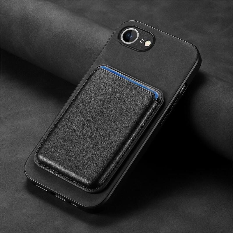 For iPhone 16e Retro Magsafe Card Bag PU Back Cover Phone Case(Black)