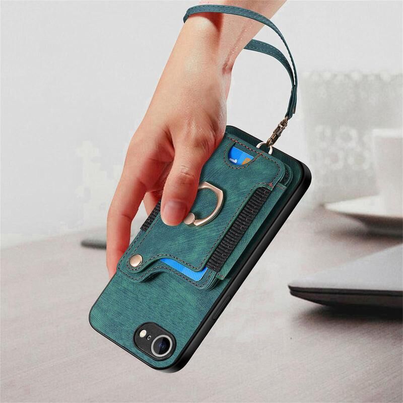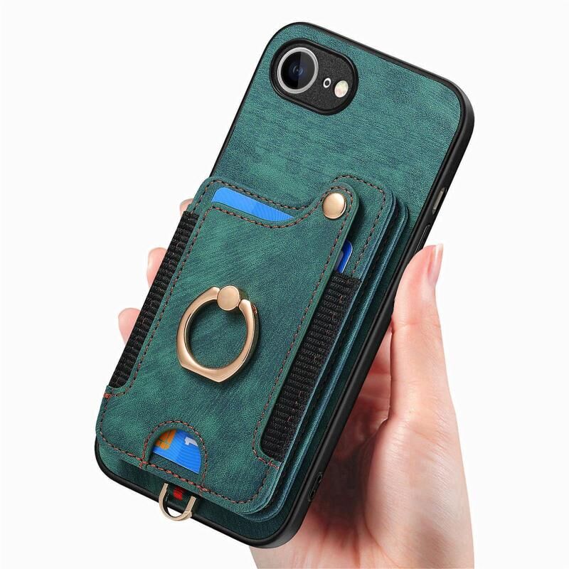 For iPhone 16e Retro Skin-feel Ring Multi-card Wallet Phone Case(Green)