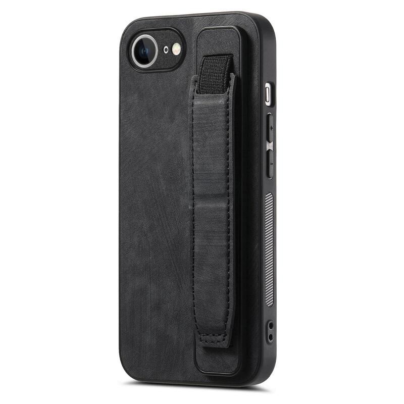 Για το iPhone 16e Ρετρό Wristband κάτοχος δέρμα πίσω υπόθεση τηλεφώνου (μαύρο)
