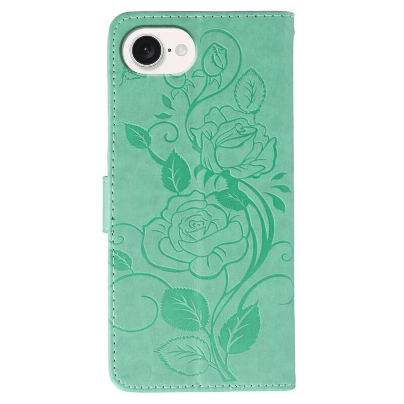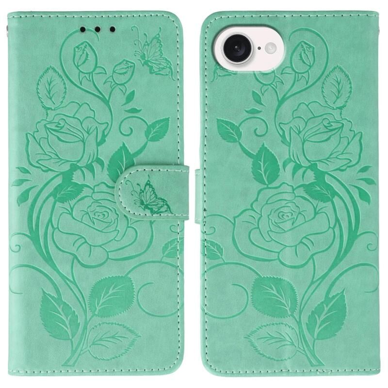 For iPhone 16e Rose Butterfly Embossed Leather Phone Case(Green)
