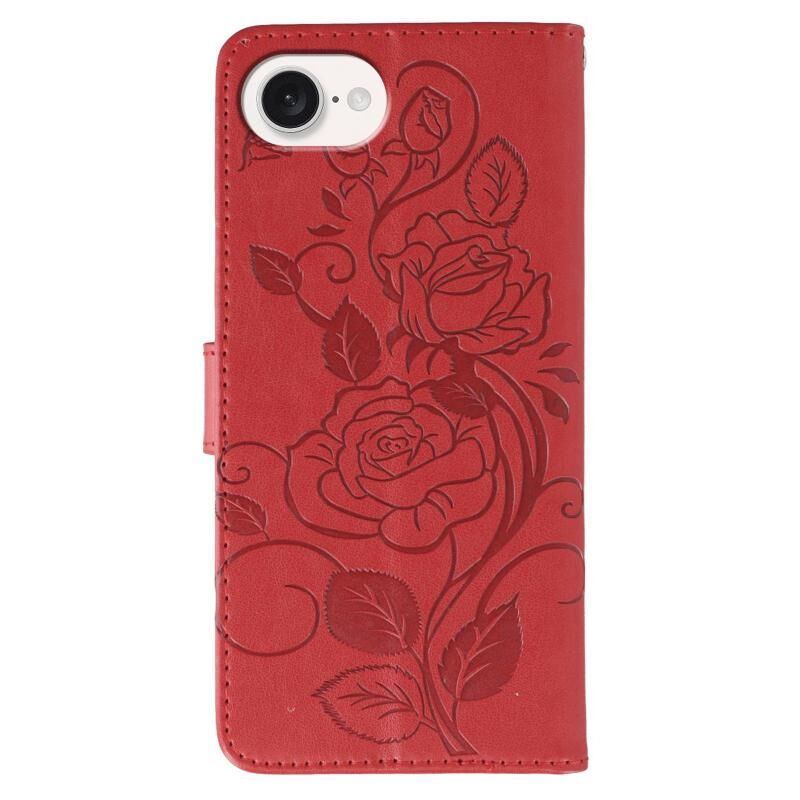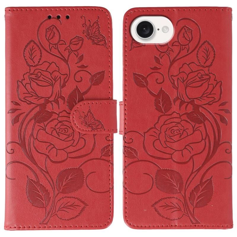 For iPhone 16e Rose Butterfly Embossed Leather Phone Case(Red)
