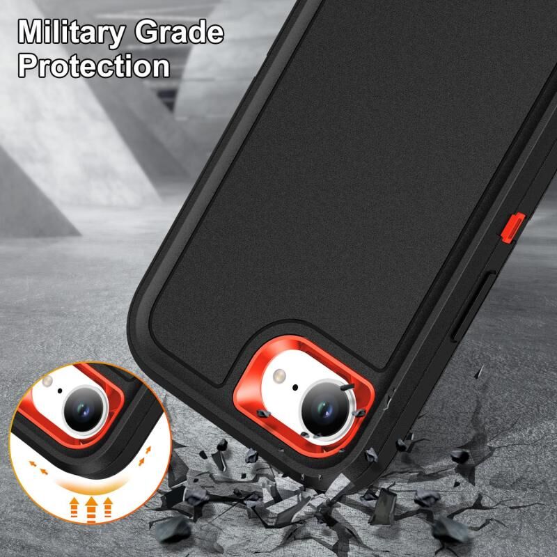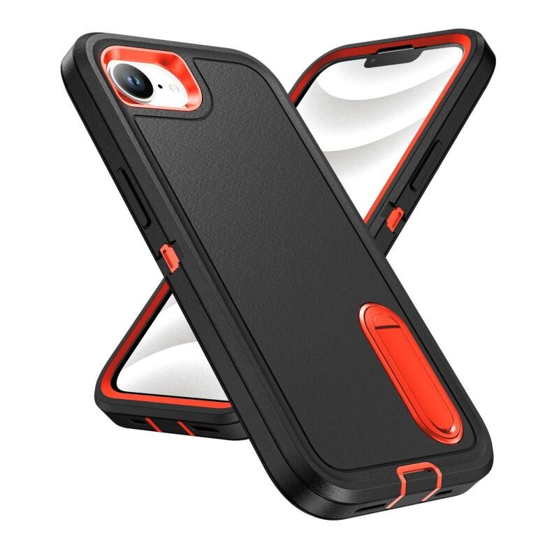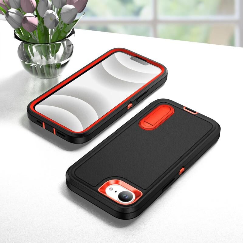 For iPhone 16e Rugged PC + Silicone Phone Case with Holder(Black+Orange)