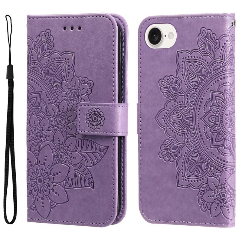 For iPhone 16e Seven-petal Flowers Embossing Leather Phone Case(Light Purple)