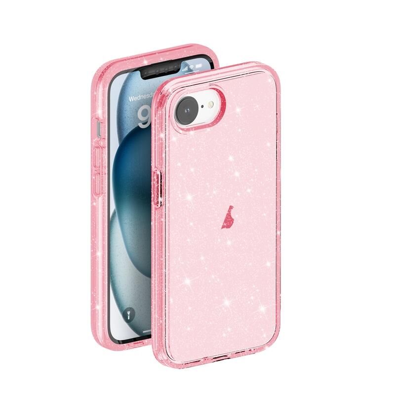 For iPhone 16e Shockproof Terminator Glitter Powder Phone Case(Pink)