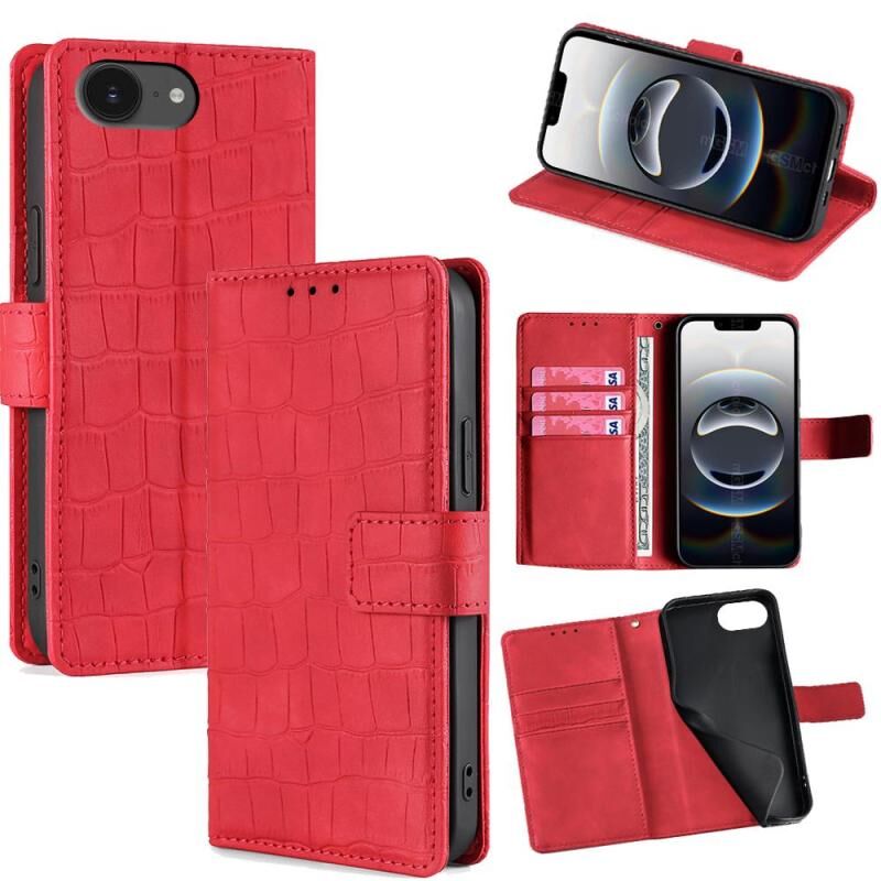 For iPhone 16e Skin Feel Crocodile Magnetic Clasp Leather Phone Case(Red)