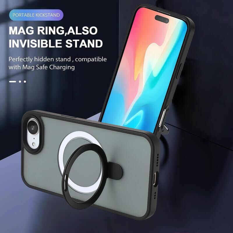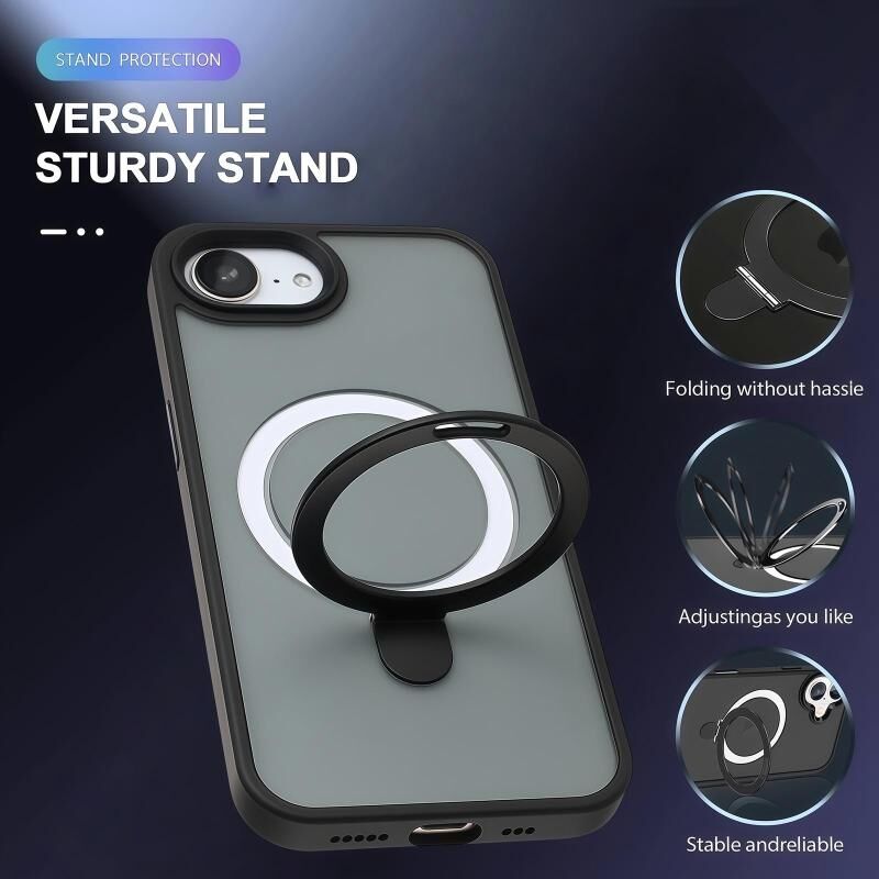 6. Περιστρεφόμενη Βάση Δακτυλιδιού 360: Με έναν συμπαγή και πρακτικό σχεδιασμό, συνδυάζουμε απρόσκοπτα την ισχυρή τεχνολογία MagSafe με μια αναδιπλούμενη βάση. Η ενσωματωμένη βάση στήριξης περιστρέφεται αβίαστα 360 μοίρες και αναδιπλώνεται 120 μοίρες, προσφέροντάς σας την ιδανική γωνία θέασης τόσο σε οριζόντιο όσο και σε κάθετο προσανατολισμό. Όταν είναι διπλωμένη, ευθυγραμμίζεται απρόσκοπτα με την πλάτη της θήκης, διατηρώντας ένα λεπτό προφίλ για εύκολη ολίσθηση στην τσέπη.