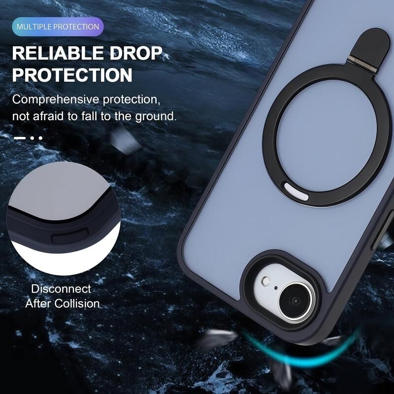 6. Περιστρεφόμενη Βάση Δακτυλιδιού 360: Με έναν συμπαγή και πρακτικό σχεδιασμό, συνδυάζουμε απρόσκοπτα την ισχυρή τεχνολογία MagSafe με μια αναδιπλούμενη βάση. Η ενσωματωμένη βάση στήριξης περιστρέφεται αβίαστα 360 μοίρες και αναδιπλώνεται 120 μοίρες, προσφέροντάς σας την ιδανική γωνία θέασης τόσο σε οριζόντιο όσο και σε κάθετο προσανατολισμό. Όταν είναι διπλωμένη, ευθυγραμμίζεται απρόσκοπτα με την πλάτη της θήκης, διατηρώντας ένα λεπτό προφίλ για εύκολη ολίσθηση στην τσέπη.