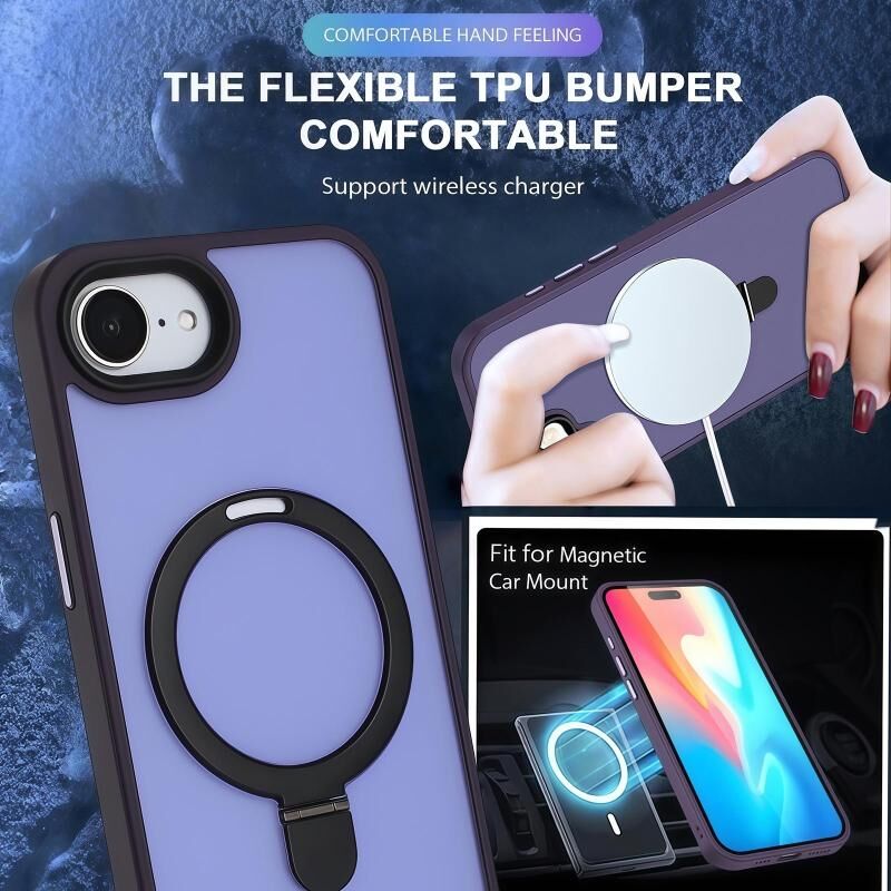 6. Περιστρεφόμενη Βάση Δακτυλιδιού 360: Με έναν συμπαγή και πρακτικό σχεδιασμό, συνδυάζουμε απρόσκοπτα την ισχυρή τεχνολογία MagSafe με μια αναδιπλούμενη βάση. Η ενσωματωμένη βάση στήριξης περιστρέφεται αβίαστα 360 μοίρες και αναδιπλώνεται 120 μοίρες, προσφέροντάς σας την ιδανική γωνία θέασης τόσο σε οριζόντιο όσο και σε κάθετο προσανατολισμό. Όταν είναι διπλωμένη, ευθυγραμμίζεται απρόσκοπτα με την πλάτη της θήκης, διατηρώντας ένα λεπτό προφίλ για εύκολη ολίσθηση στην τσέπη.