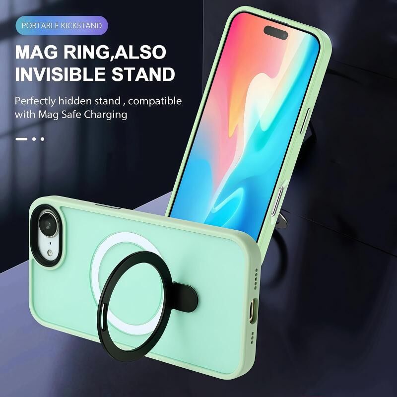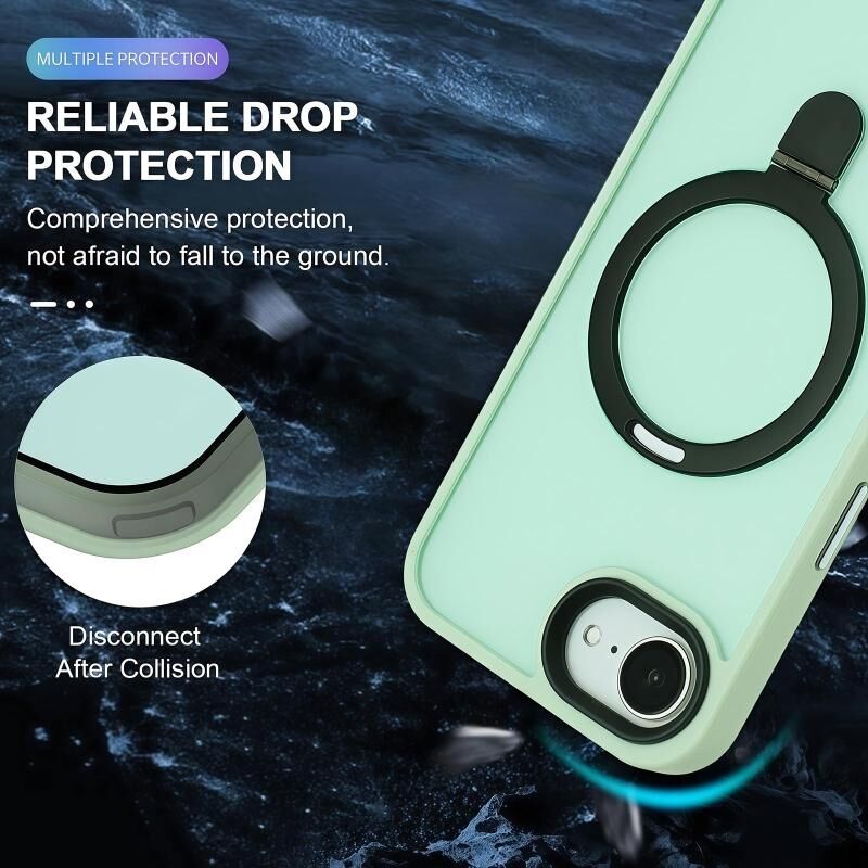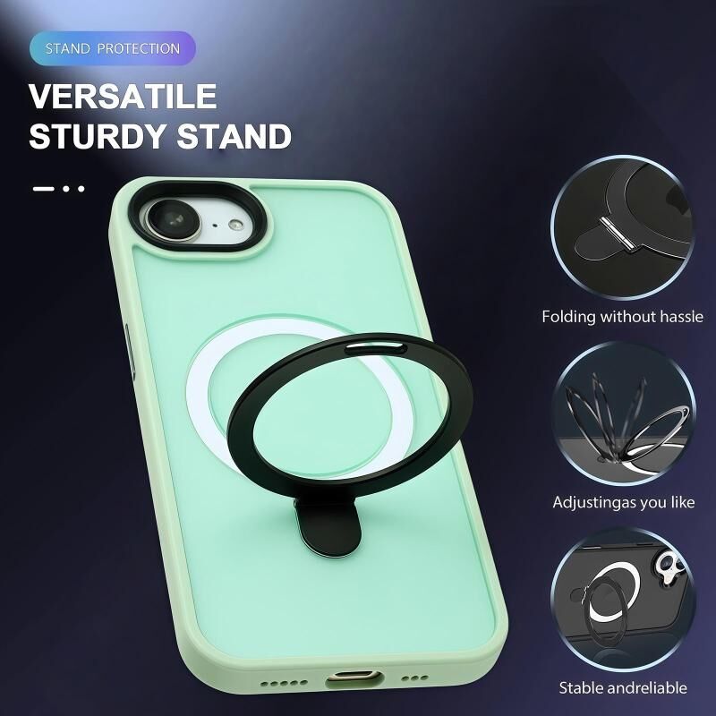 6. Περιστρεφόμενη Βάση Δακτυλιδιού 360: Με έναν συμπαγή και πρακτικό σχεδιασμό, συνδυάζουμε απρόσκοπτα την ισχυρή τεχνολογία MagSafe με μια αναδιπλούμενη βάση. Η ενσωματωμένη βάση στήριξης περιστρέφεται αβίαστα 360 μοίρες και αναδιπλώνεται 120 μοίρες, προσφέροντάς σας την ιδανική γωνία θέασης τόσο σε οριζόντιο όσο και σε κάθετο προσανατολισμό. Όταν είναι διπλωμένη, ευθυγραμμίζεται απρόσκοπτα με την πλάτη της θήκης, διατηρώντας ένα λεπτό προφίλ για εύκολη ολίσθηση στην τσέπη.