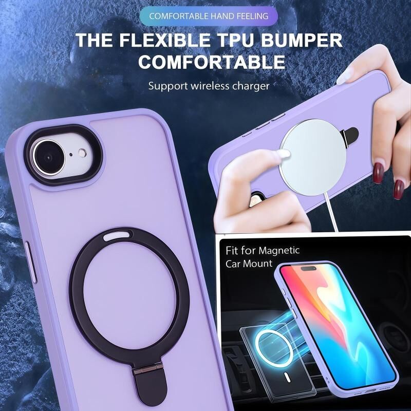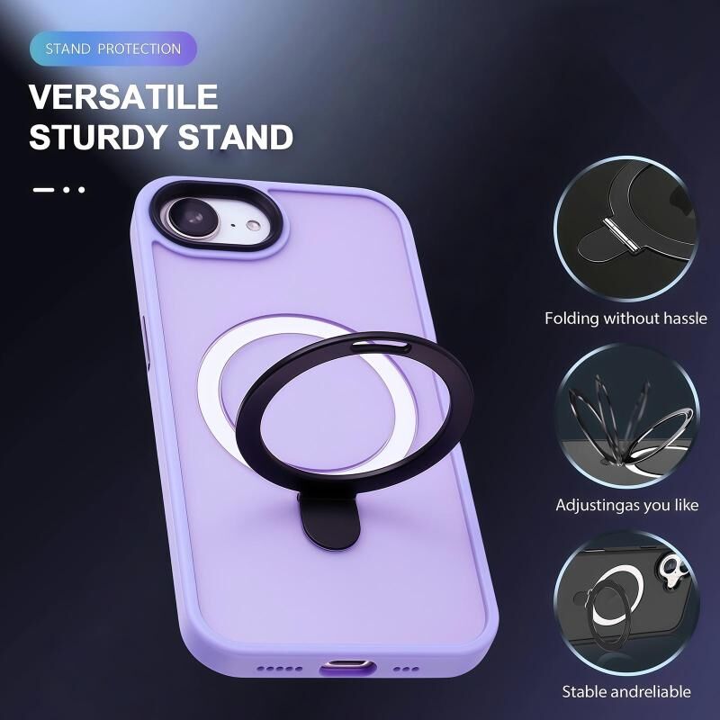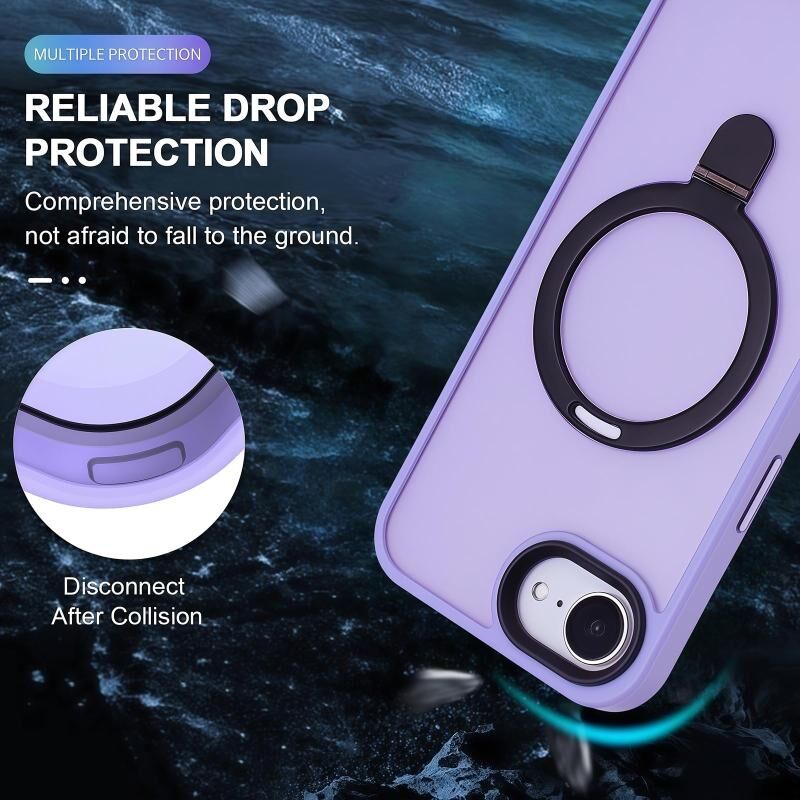 6. Περιστρεφόμενη Βάση Δακτυλιδιού 360: Με έναν συμπαγή και πρακτικό σχεδιασμό, συνδυάζουμε απρόσκοπτα την ισχυρή τεχνολογία MagSafe με μια αναδιπλούμενη βάση. Η ενσωματωμένη βάση στήριξης περιστρέφεται αβίαστα 360 μοίρες και αναδιπλώνεται 120 μοίρες, προσφέροντάς σας την ιδανική γωνία θέασης τόσο σε οριζόντιο όσο και σε κάθετο προσανατολισμό. Όταν είναι διπλωμένη, ευθυγραμμίζεται απρόσκοπτα με την πλάτη της θήκης, διατηρώντας ένα λεπτό προφίλ για εύκολη ολίσθηση στην τσέπη.
