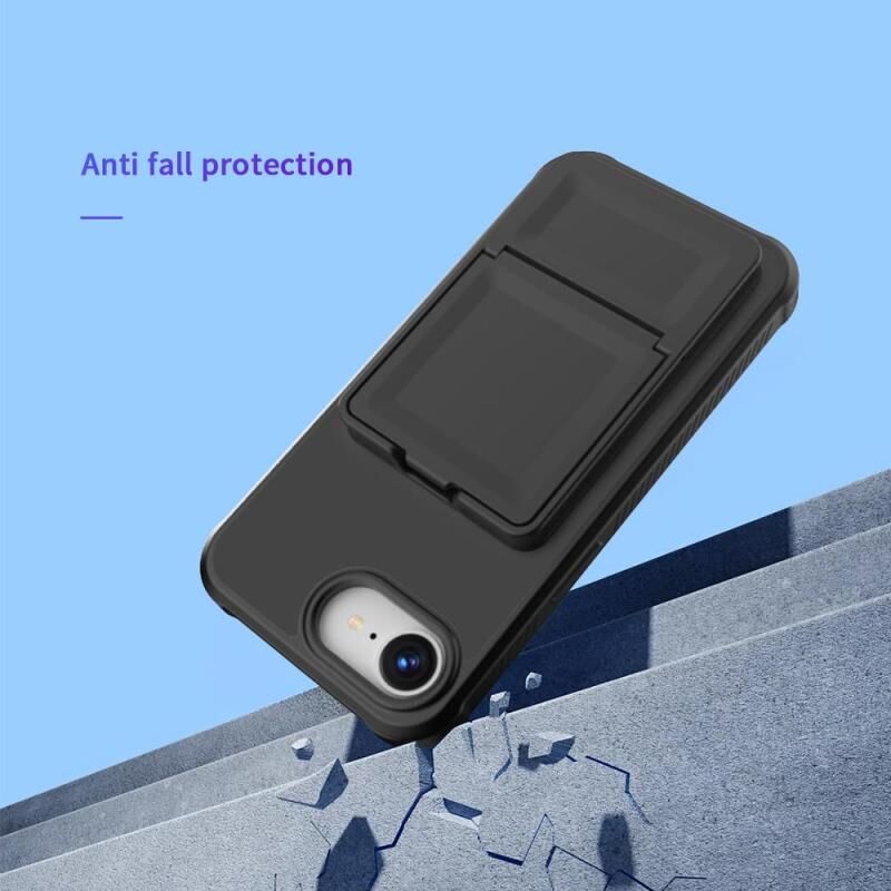 For iPhone 16e Skin Feel TPU Hidden Mirror Card Bag Phone Case with Stand(Black)