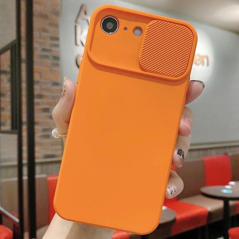 For iPhone 16e Slid Camera Shield Liquid Silicone TPU Phone Case(Orange)