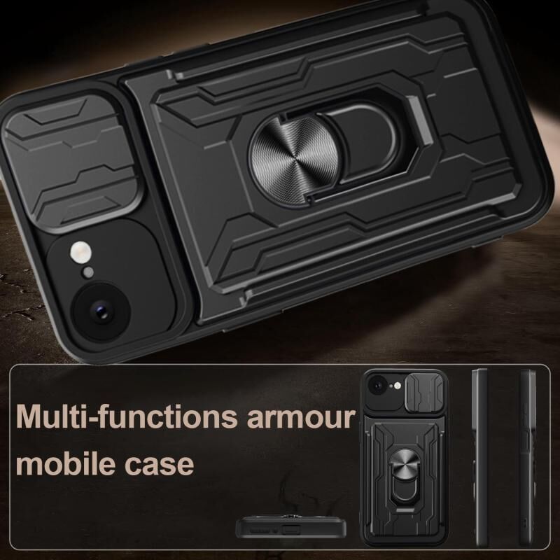 For iPhone 16e Sliding Camshield TPU+PC Phone Case with Card Slot(Red)