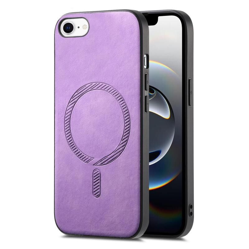 For iPhone 16e Solid Color Retro Magsafe PU Back Cover Phone Case(Purple)