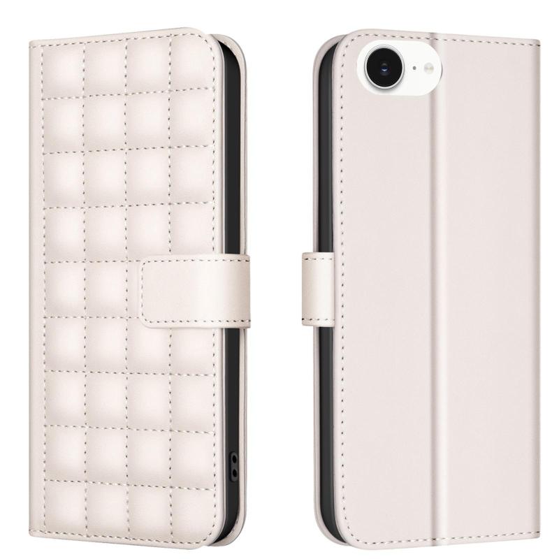 For iPhone 16e Square Texture Leather Phone Case(Beige)