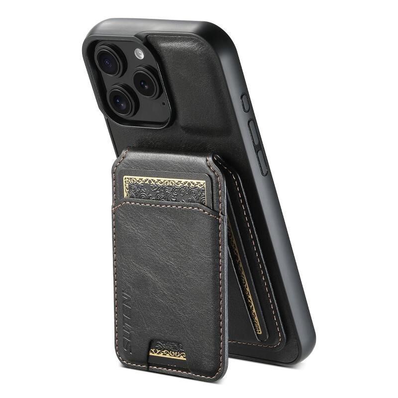 For iPhone 16e Suteni H02 Leather Wallet Stand Back Phone Case(Black) (Suteni)