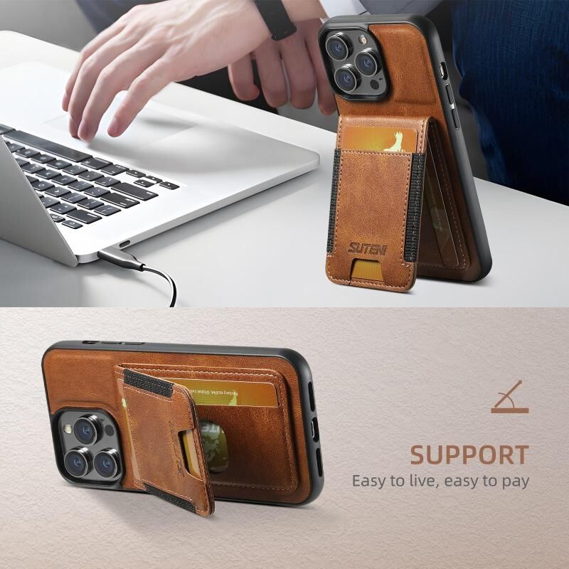 Θήκη κινητού τηλεφώνου για iPhone 16e Suteni H03 από δέρμα με κερί λαδιού, με βάση-πορτοφόλι (Μαύρο) (Suteni)