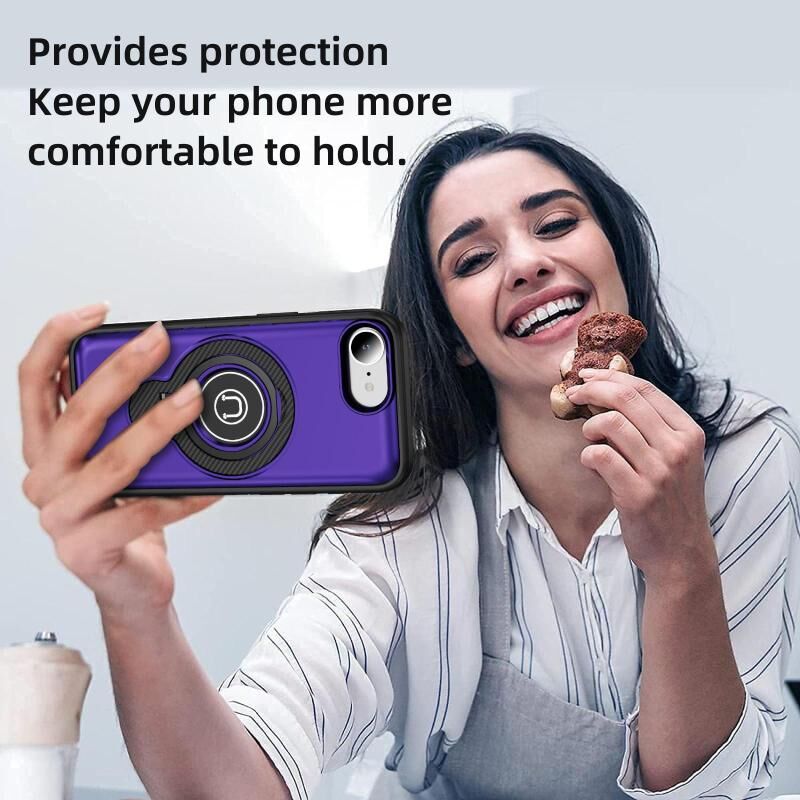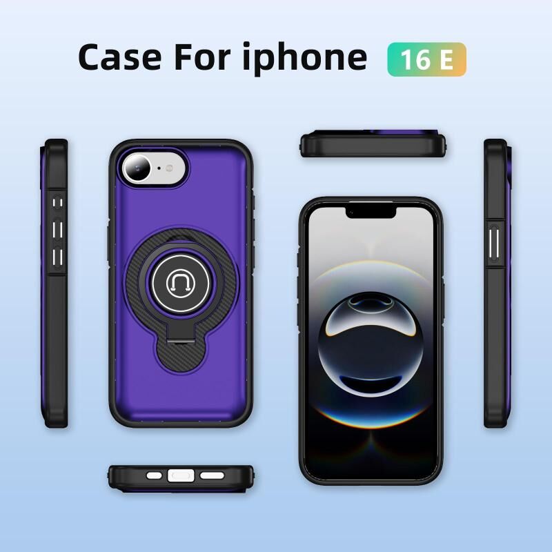 For iPhone 16e TPU Hybrid PC Magnetic Holder Phone Case(Dark Purple)