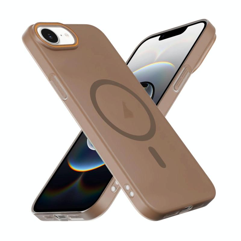 For iPhone 16e Translucent Frosted Skin PC MagSafe Phone Case(Desert Gold)