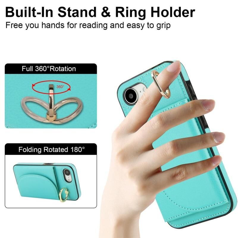 Θήκη τηλεφώνου για iPhone 16e YM007 με δακτύλιο στήριξης και θήκη κάρτας, αίσθηση δέρματος (Πράσινο)