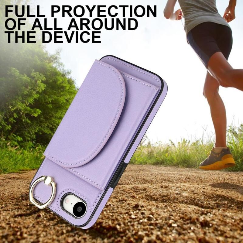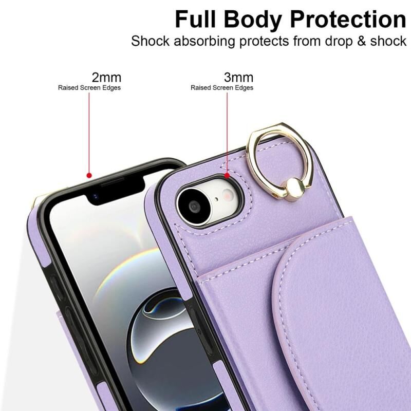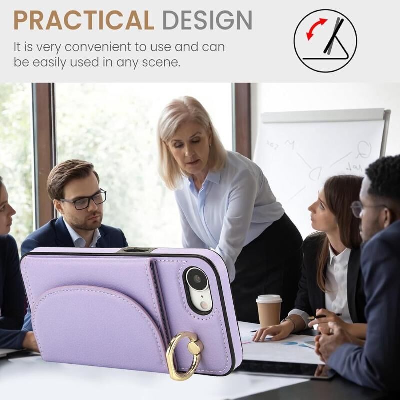 Θήκη τηλεφώνου για iPhone 16e YM007 με δακτύλιο στήριξης και θήκη κάρτας, αίσθηση δέρματος (Πράσινο)