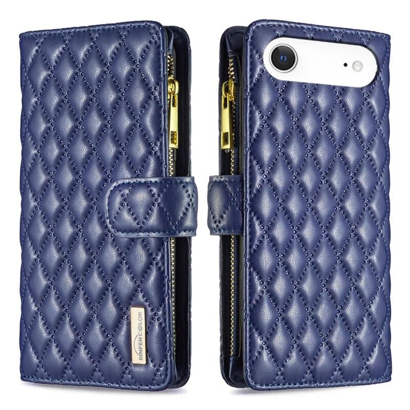For iPhone 17 Air Diamond Lattice Zipper Wallet Leather Flip Phone Case(Blue)