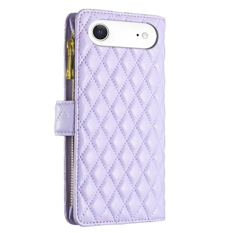For iPhone 17 Air Diamond Lattice Zipper Wallet Leather Flip Phone Case(Purple)