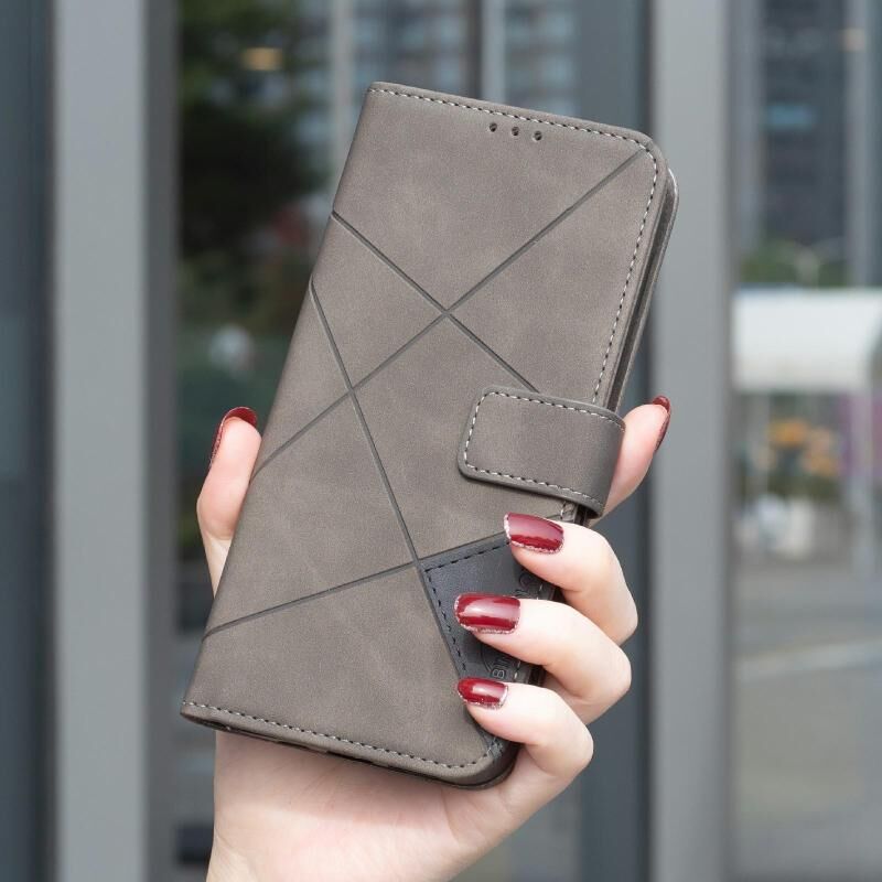 For iPhone 17 Air Magnetic Buckle Rhombus Texture Leather Phone Case(Grey)