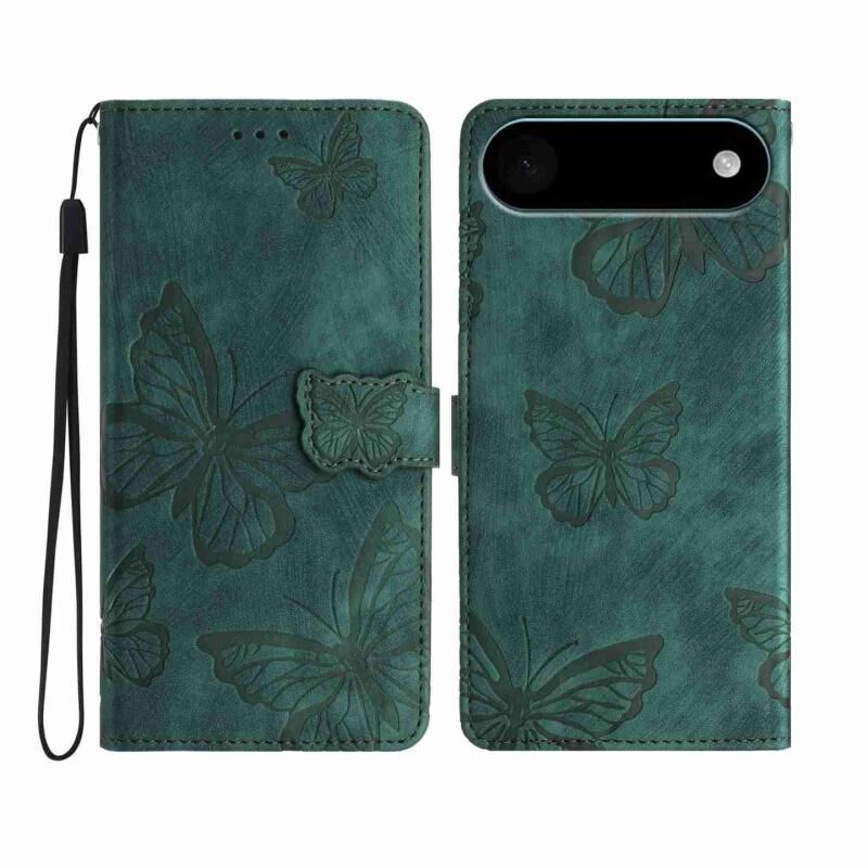 For iPhone 17 Air Skin-feel Embossed Butterfly Leather Phone Case(Green)