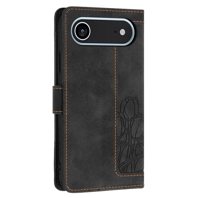 For iPhone 17 Air Tulips Embossed Leather Phone Case with Lanyard(Black)
