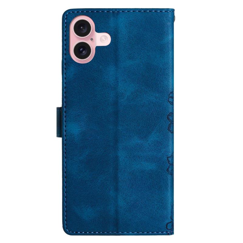 For iPhone 17 Cherry Blossom Butterfly Skin Feel Embossed PU Phone Case(Blue)