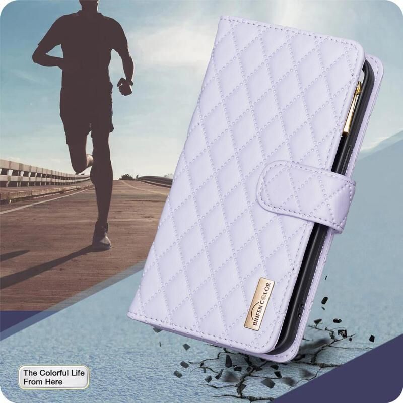 For iPhone 17 Diamond Lattice Zipper Wallet Leather Flip Phone Case(Purple)