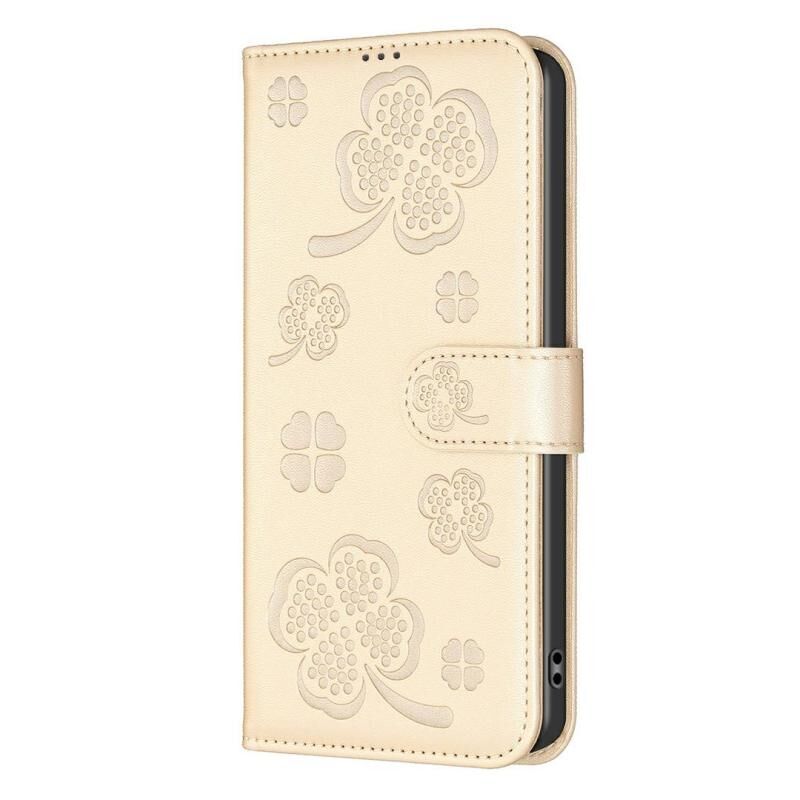 For iPhone 17 Four-leaf Embossed Leather Phone Case(Gold)