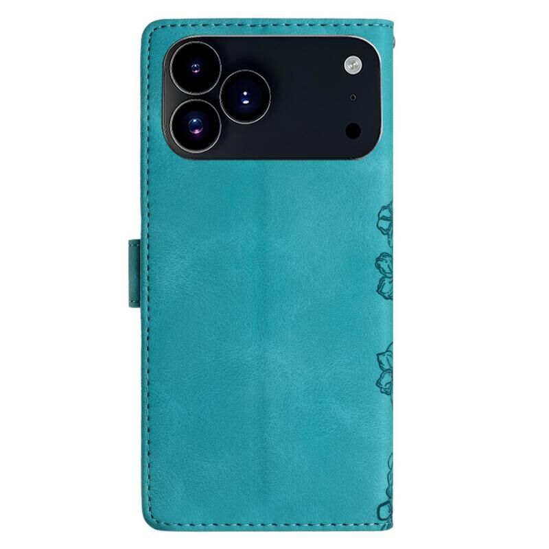 Θήκη τηλεφώνου από PU με ανάγλυφη υφή δέρματος, με σχέδιο πεταλούδας και άνθη κερασιάς για iPhone 17 Pro (πράσινο)