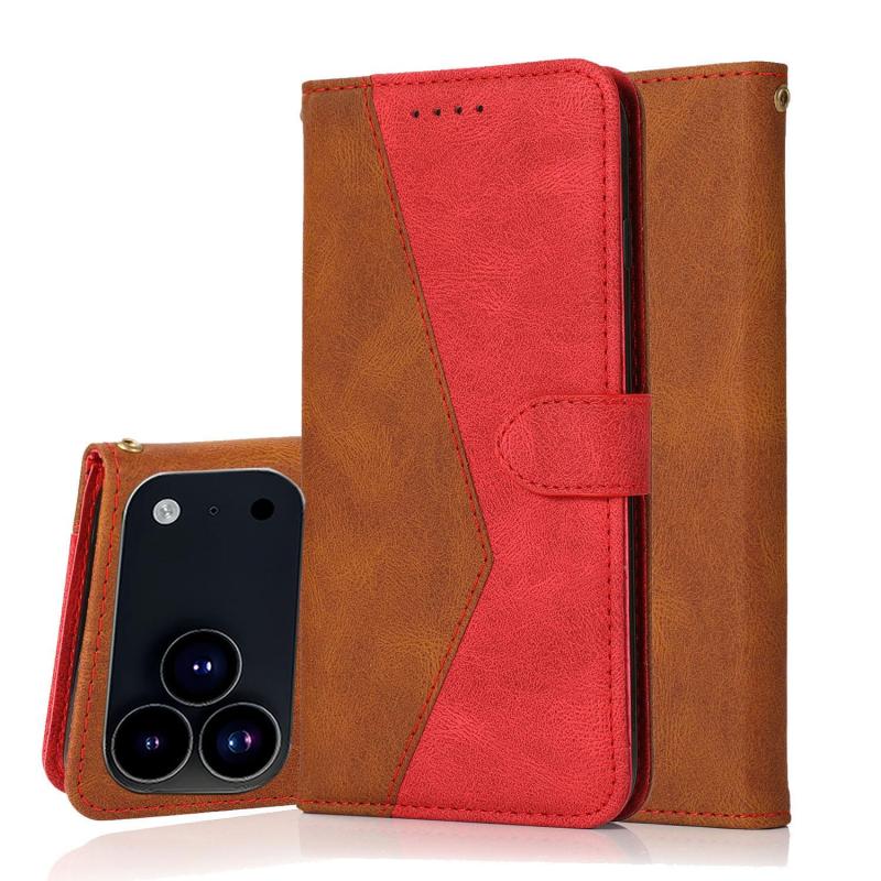Θήκη τηλεφώνου από δέρμα με διπλή ραφή για iPhone 17 Pro (Καφέ-κόκκινο)