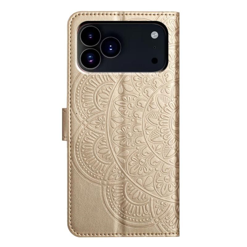 Θήκη τηλεφώνου από δέρμα με ανάγλυφο λουλούδι για iPhone 17 Pro (Χρυσός)