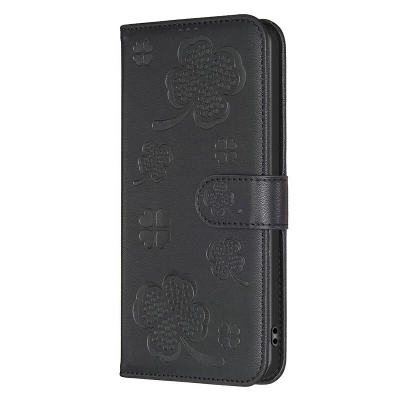 Θήκη τηλεφώνου από ανάγλυφο δέρμα με τετράφυλλο τριφύλλι για iPhone 17 Pro (Μαύρο)