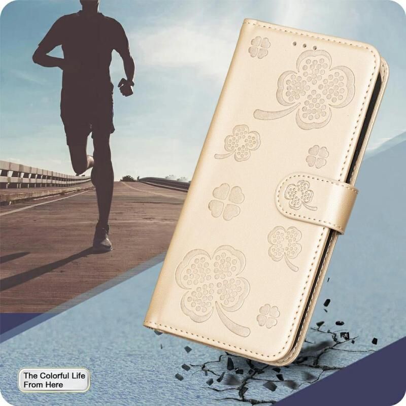 Θήκη τηλεφώνου από ανάγλυφο δέρμα με τετράφυλλο τριφύλλι για iPhone 17 Pro (Χρυσός)