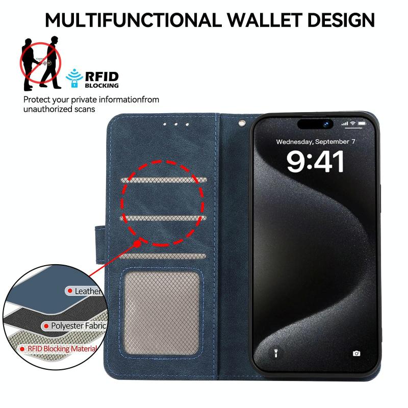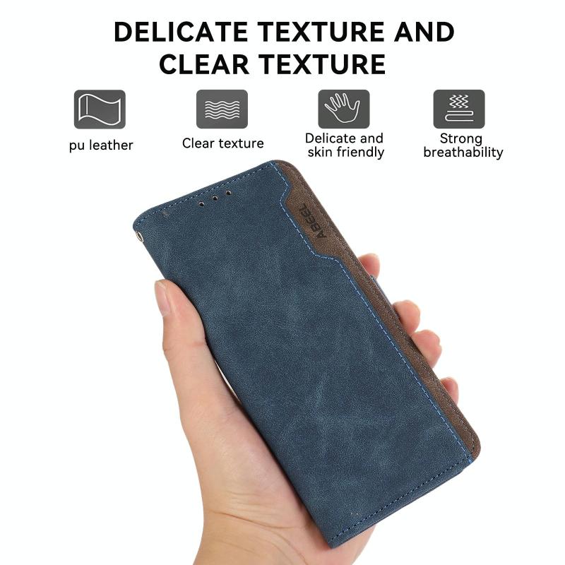 For iPhone 17 Pro Max ABEEL Color Block Magnetic RFID Leather Phone Case(Blue-Brown)