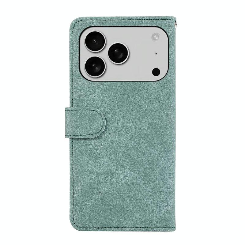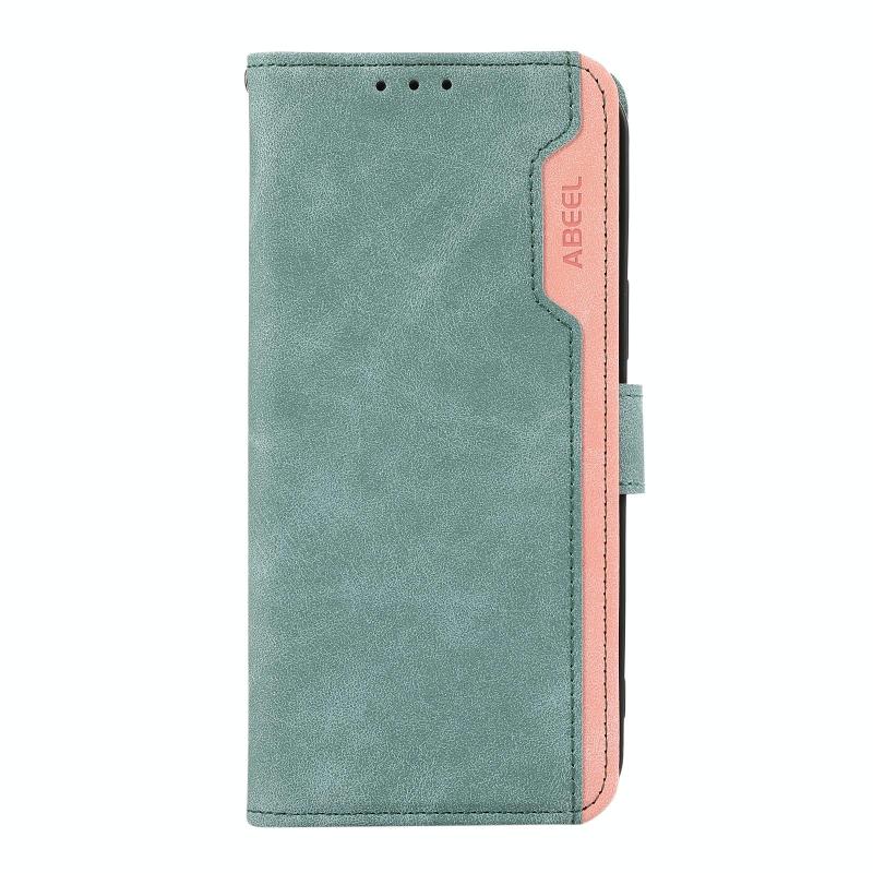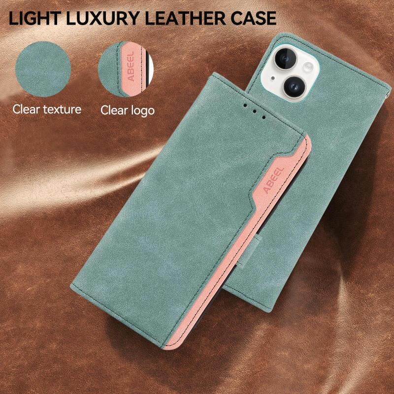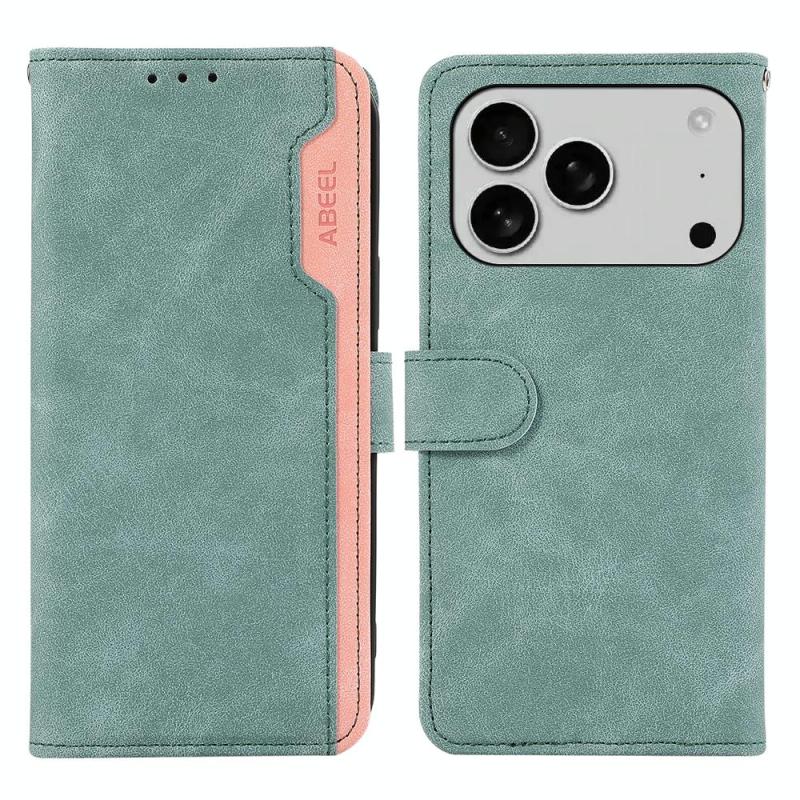 For iPhone 17 Pro Max ABEEL Color Block Magnetic RFID Leather Phone Case(Cyan-Pink)