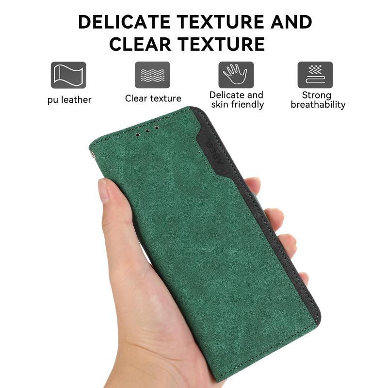 For iPhone 17 Pro Max ABEEL Color Block Magnetic RFID Leather Phone Case(Green-Black)