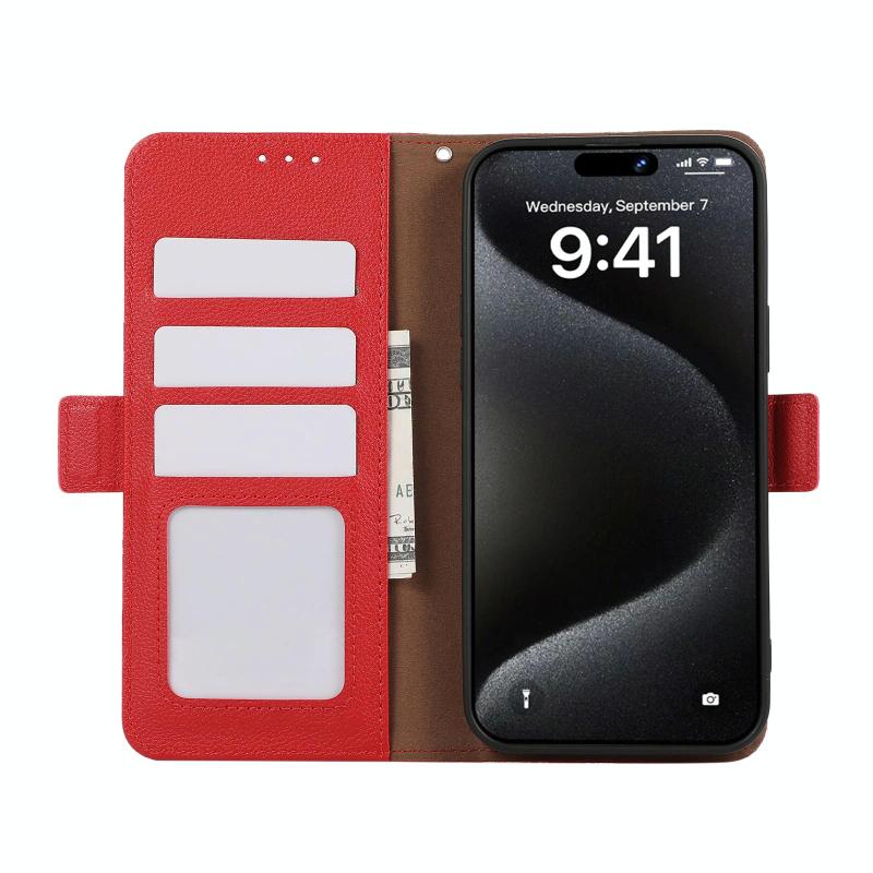 For iPhone 17 Pro Max ABEEL Side-Magnetic Litchi Pattern Leather RFID Phone Case(Red)