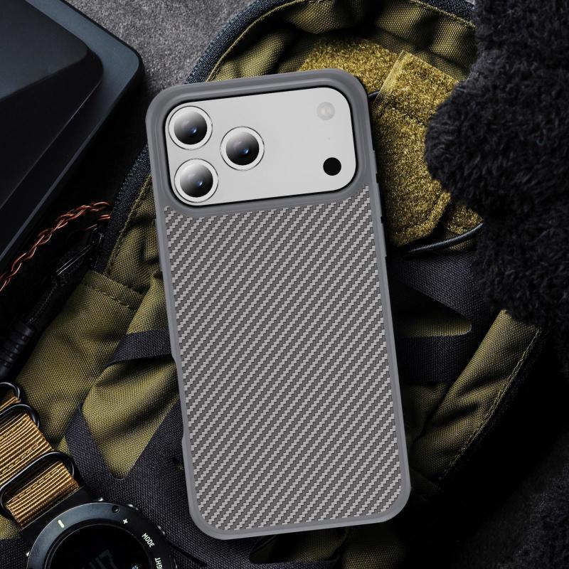 For iPhone 17 Pro Max Carbon Fiber Texture Skin-feel Acrylic TPU Phone Case(Grey)