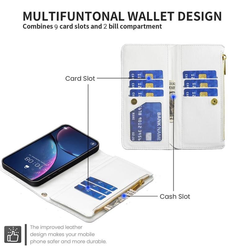 4. Πορτοφόλι με Φερμουάρ: Υπερπολλαπλές υποδοχές καρτών μπορούν να χωρέσουν 6 κάρτες. Το άνοιγμα και το κλείσιμο του διαμερίσματος με φερμουάρ προστατεύει τα χρήματά σας. Άνετο και πρακτικό για να βγαίνετε έξω με μια τσάντα κινητού!