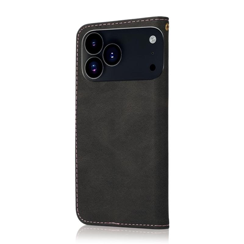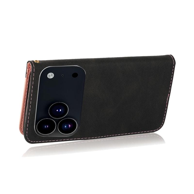 Θήκη τηλεφώνου από δέρμα με διχρωμία ραφής για iPhone 17 Pro Max (Μαύρο Ροζ Χρυσό)